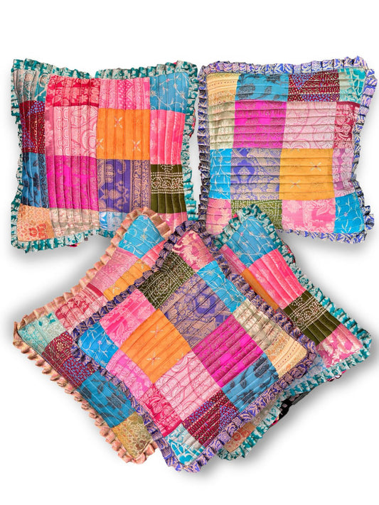 EarthSilk Patchwork Frilly Cushion Covers (100% Silk)